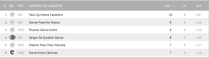 Entre los que se destacan al Central Eduardo que consiguio un doblete para colocarse co-pichichi junto a nuestro gran capitan. Tambien mojo por partida doble nuestro 7, Gonzalo...y no se quedaron atras los dos delanteros, Ernesto y Dani "perraka in the sky" del equipo con un gol cada uno.